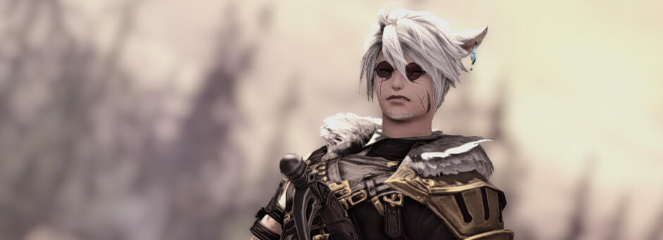 Taro is a Keeper of the moon Miqo’te of above average height and build. He has snow white hair and emerald green eyes, though one of his eyes has since been rendered blind and now appears as white. His upper body is covered in scars including several on his face. Namely, one over his right eye, an “x” on his left cheek as well as several on his left arm due to a self-inflicted sword wound. Like all male miqo’te he has marking under his eyes and has black streaks along his cheeks.Taro is usually seen in dark attire which contrasts heavily with his white hair. When he was a Pilus Prior in the Imperial army he wore a custom set of armor which allowed for his ears to have room. After defecting, Taro would adopt a more simple wardrobe as he got used to life in Eorzea. When he adopted the job of “Gunbreaker” Taro would wear a black variant of the Gunbreaker’s “Bodyguard” artefact armor as well as a pair of glasses in order to assist with the rapidly diminishing abilities of his left eye.During the Ilsabard Campaign, Taro would fully lose the use of his left eye, adopting an eyepatch to cover it. He would alter his gear and adopt the furlined, Allegiance Coat with some carryovers from his old armor. While he initially wore the coat in black along with his eyepatch, Taro would swap this out for a brown leather variant and a pair of round, rose-tinted glasses, exposing his blind eye.As of 7.2 he would return to wearing a variant of the Bodyguard Jacket, modified by the famous Lav Lavender. This variant would include an altered set of wrist guards, armor for his left arm and a fur collar.