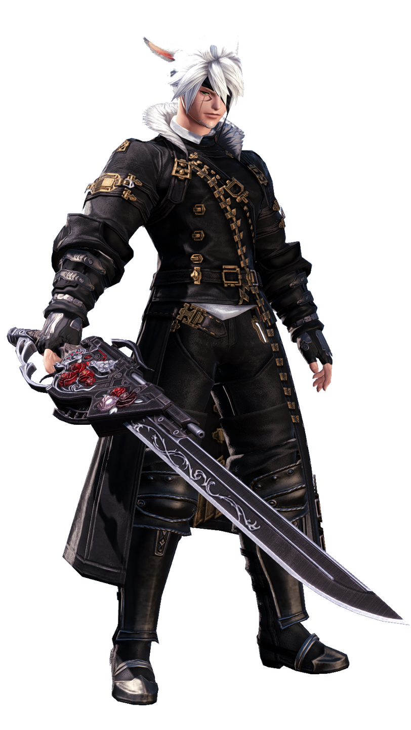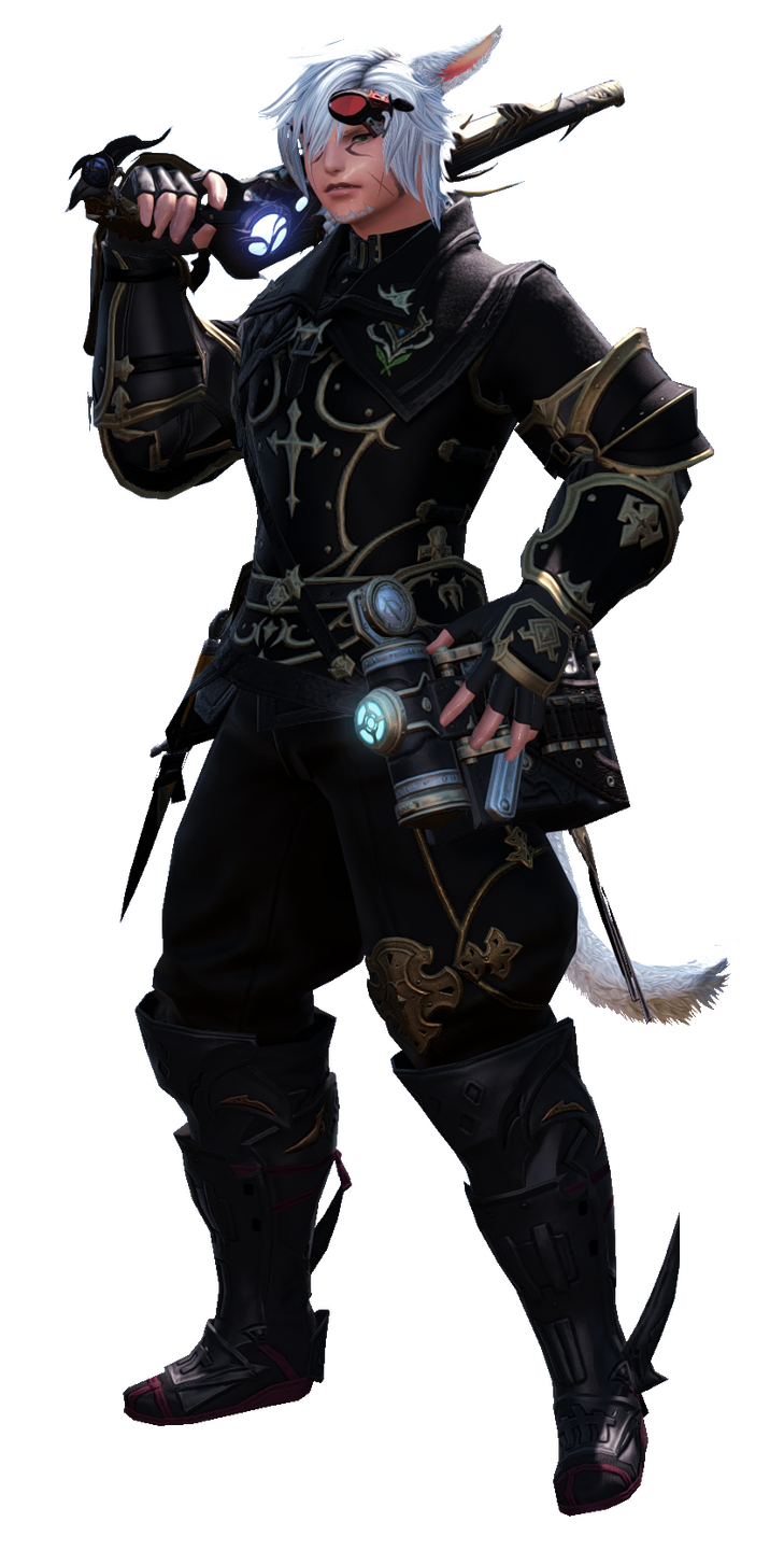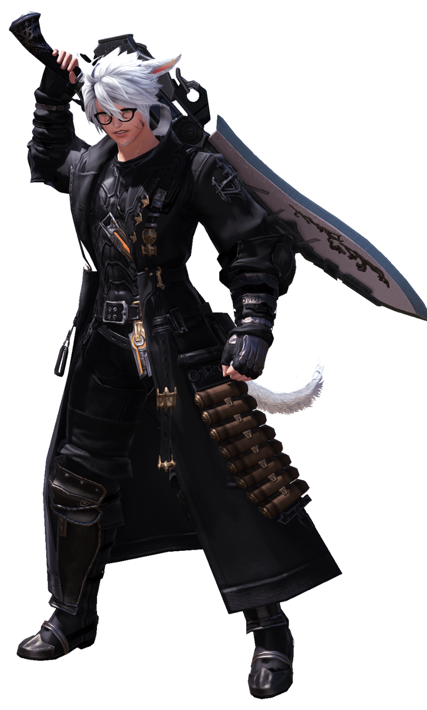 Since his arrival in Eorzea, Taro has effectively become a staunch believer in Eorzean freedom and independence. He quickly joined the Ul’dahn Grand Company, The Immortal Flames, upon his arrival to the Realm. While initially finding work as a Lancer, Taro’s self-inflicted wounds ultimately prevented him from being effective at the job. Upon his arrival in Ishgard, he would take up the job of a Machinist which would ultimately see Taro putting his knowledge of Magitek into practice. Soon after, when he participated in the liberation of Ala Mhigo, he would try Red Magic, only to suffer from aetheric poisoning, something which would damage his left eye. Taking up his firearm once more he would fight from afar until the Empire sent agents of the Alaudae and Frumentarii to capture the Miqo’te. With no other option other than to protect his comrades, Taro adopted the job of Gunbreaker.